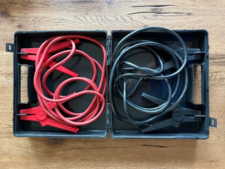 Jump start leads to start a malfunctioning car with the help of a functioning car. Simply connect the respective battery anodes and earth, start the functioning car and the start the car that is having trouble starting. Good condition.