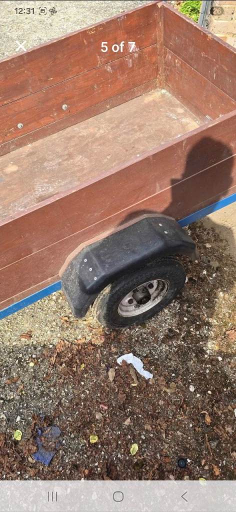 Car trailer bought for taking garden waste to the tip but no longer required. Internal capacity is 132cm x 80cm