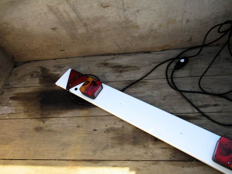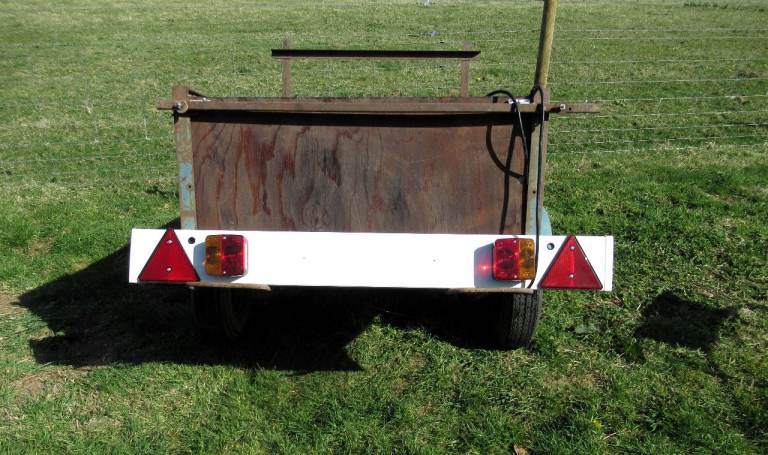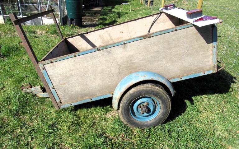 With a Bradley towing hitch and light mounting board. The trailer has been stored inside so may need new tyres. There has been some woodworm on the floor of the trailer but it is still very sturdy. The back can be taken off for ease of loading.
