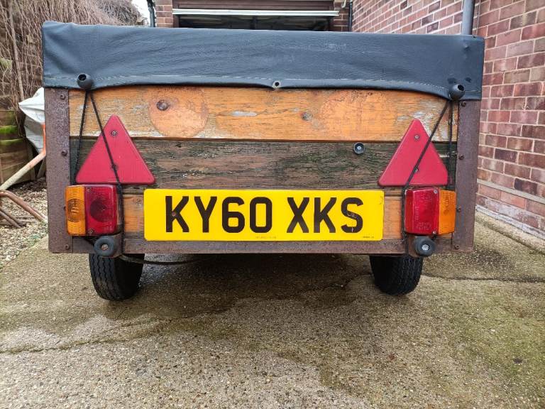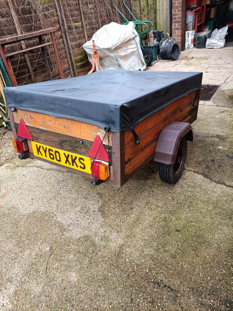 Car trailer with electrics, cover and safety cable. 5 x 3 x 1.5ft