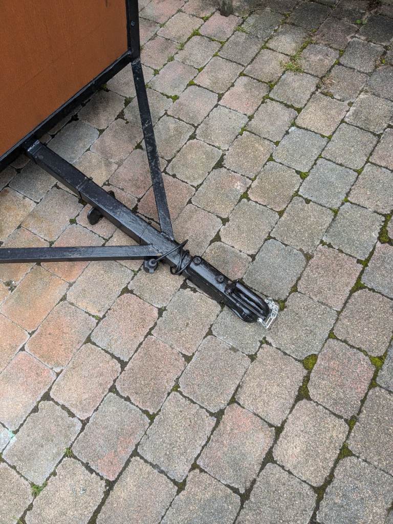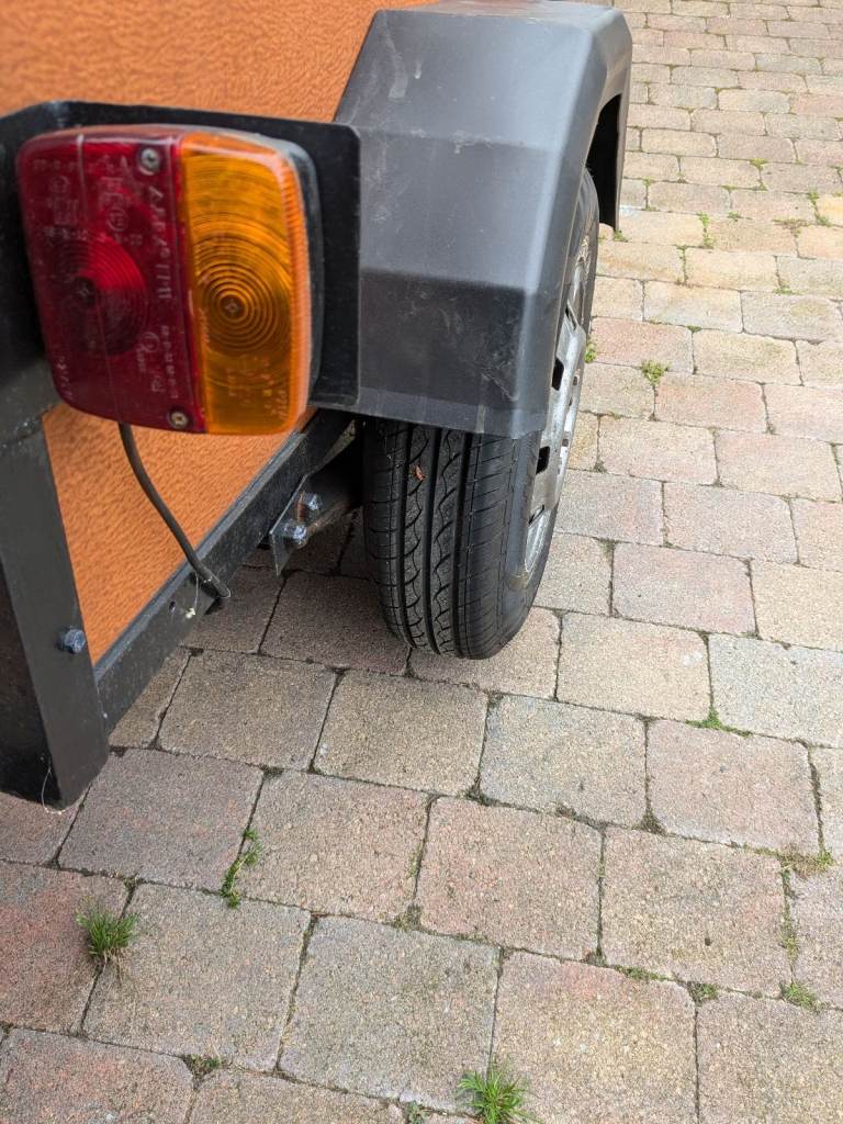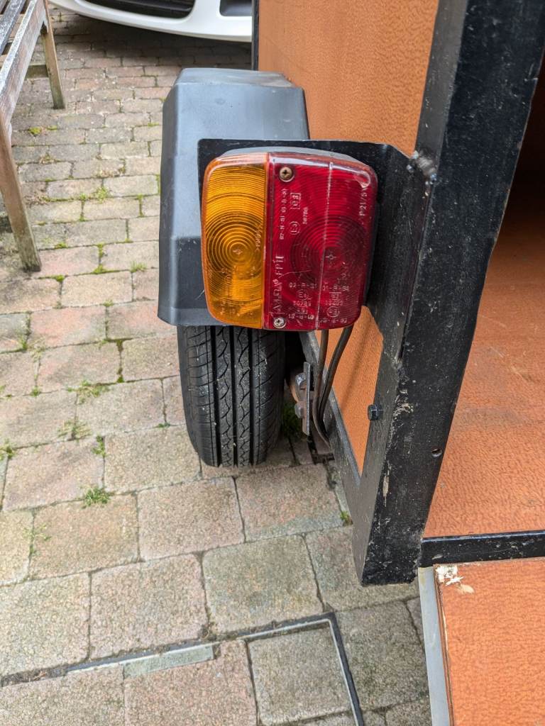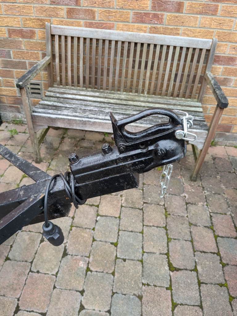 Hi. This is a box trailer with metal frame and marine ply wood panels. It has full electrics and tow hitch. Back drops down for access and is lockable. Would be good for dog transportation or gardening equipment.