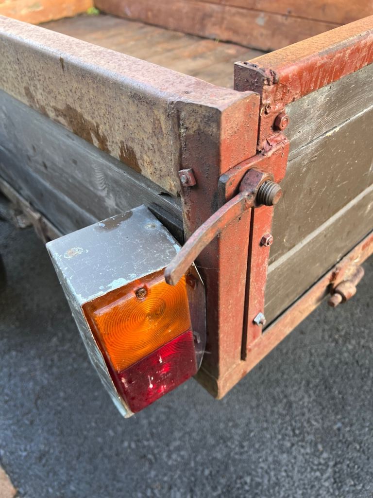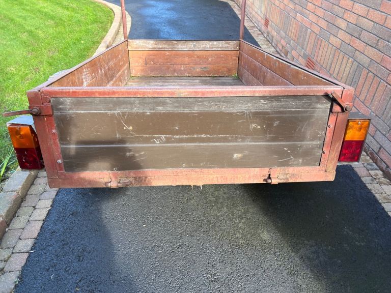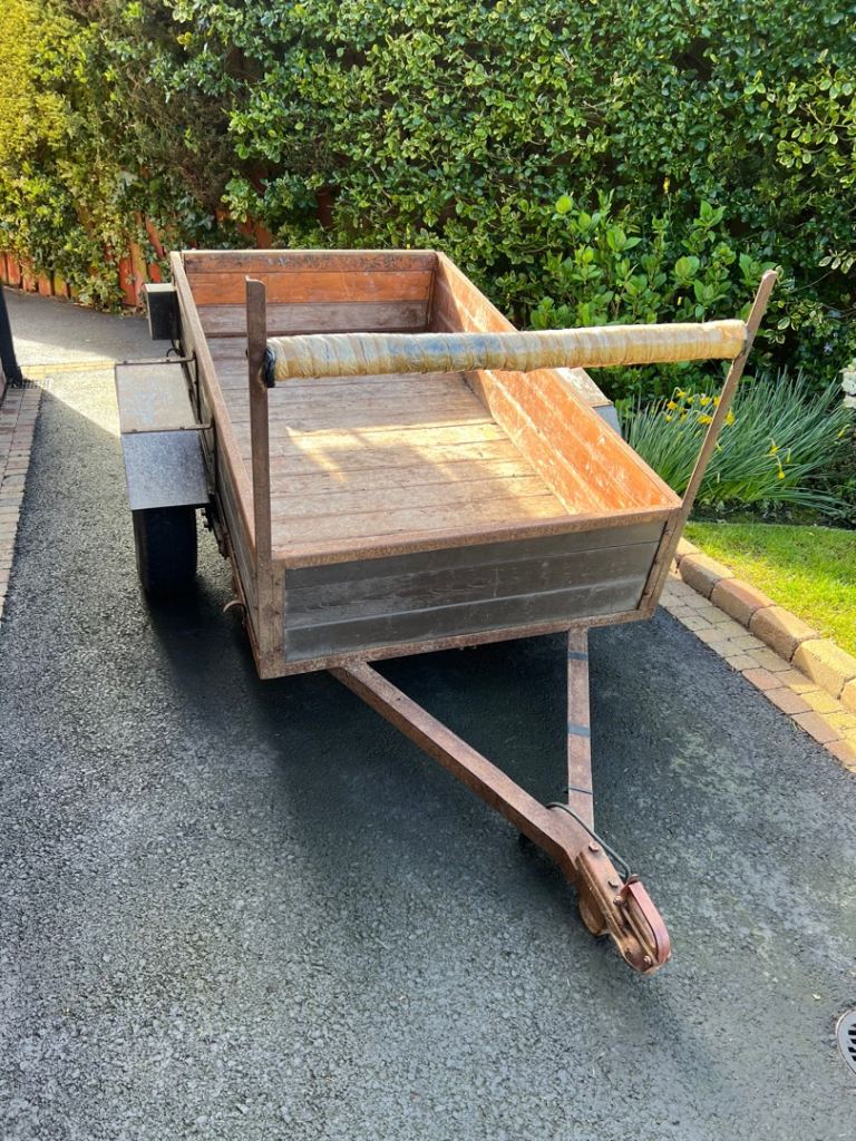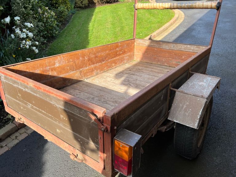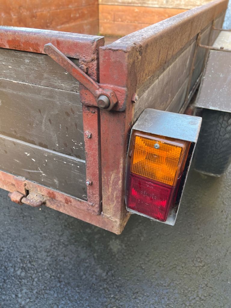 Good sturdy car Trailer with lights. Drop Tailboard. Good tyres. Outside measurements Length 72” (183.5cm) Width 40.5” (103cm). Inside Measurement Length 70” (178cm) Width 38” (97cm). Width Including Wheels / Mudguards 58” Approx.