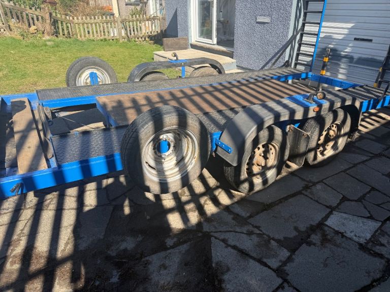 Here is our car transporter trailer only ever been used for transporting quads back and fowards it’s 16ft long 6ft wide and has a payload of 2.5tone has fold down ramps just had all new lights, brakes, and well greased on all moving parts it’s had a full service comes with two spare wheels