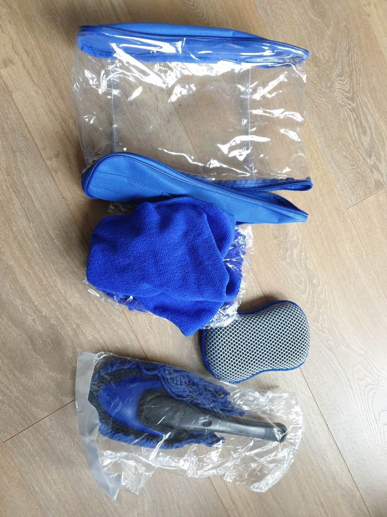 New car wash kit, 4 pieces in a storage bag. Surplus to requirements.