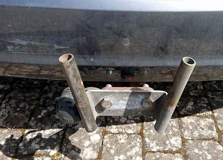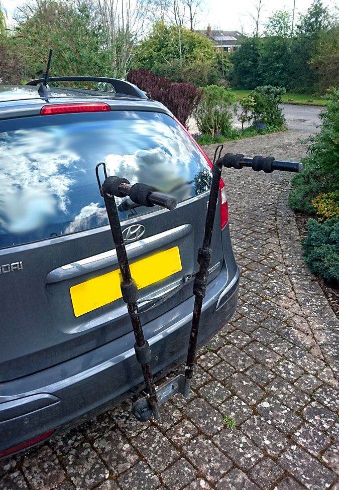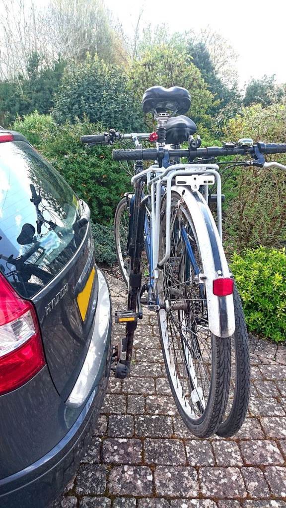 A carrier for two bikes which fits onto a standard towbar bracket and keeps the bikes away from the car (unlike some other types of carrier).