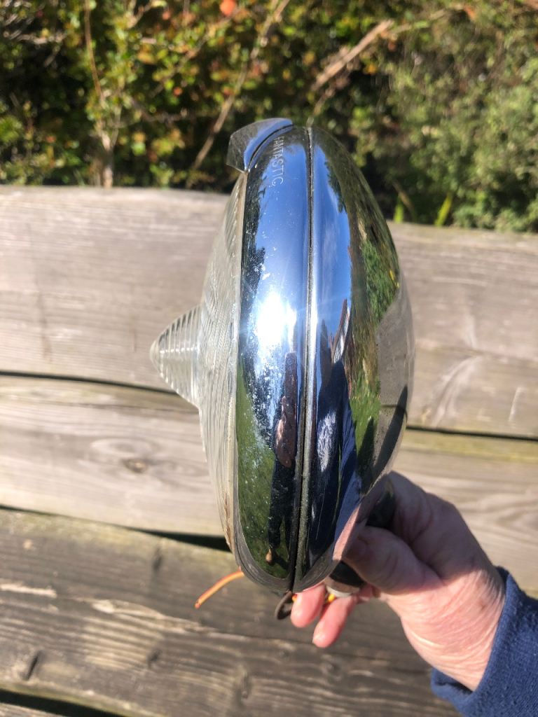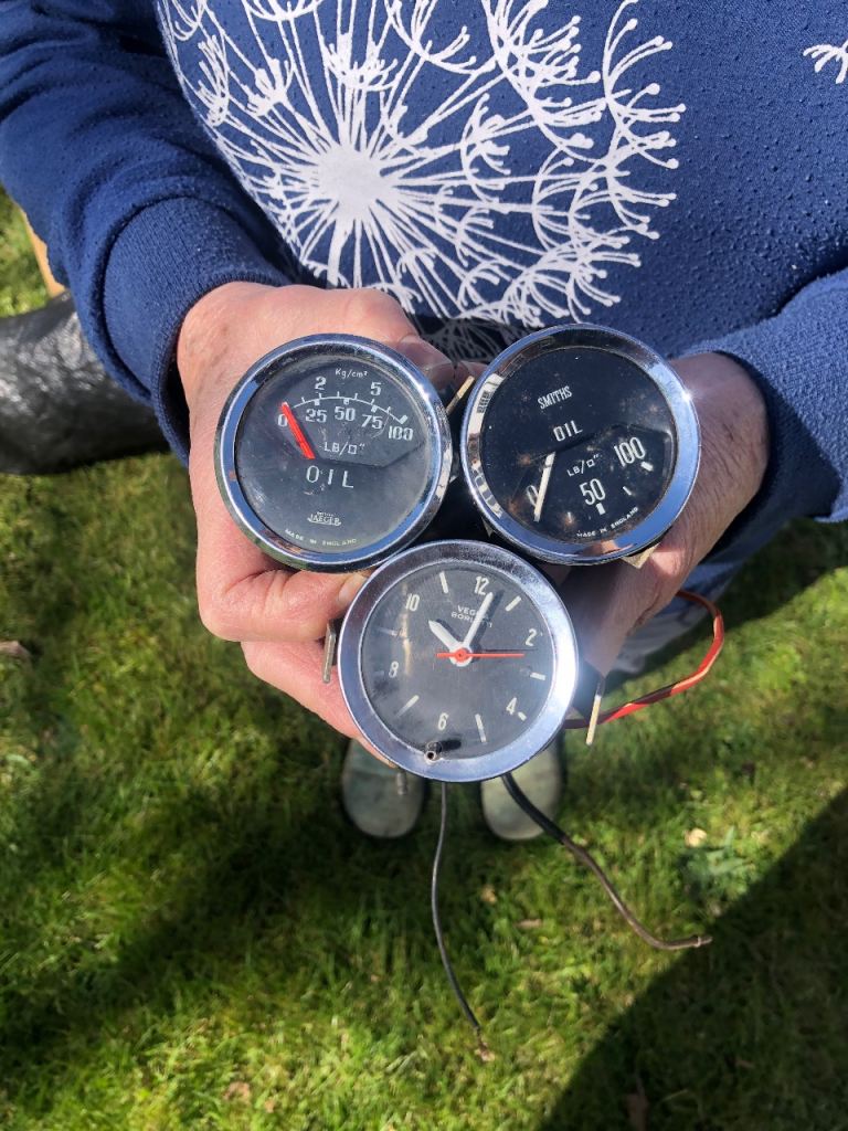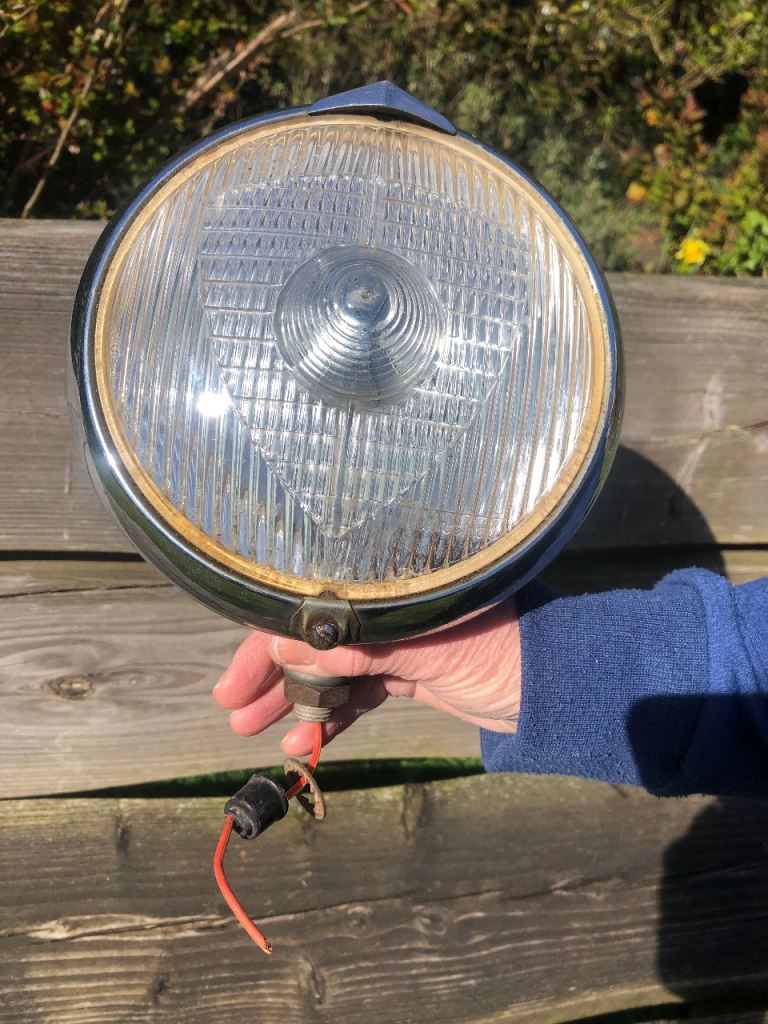 One Marchal Fantastic chrome spot light with fixing bracket plus two oil pressure gauges and clock as seen in photos