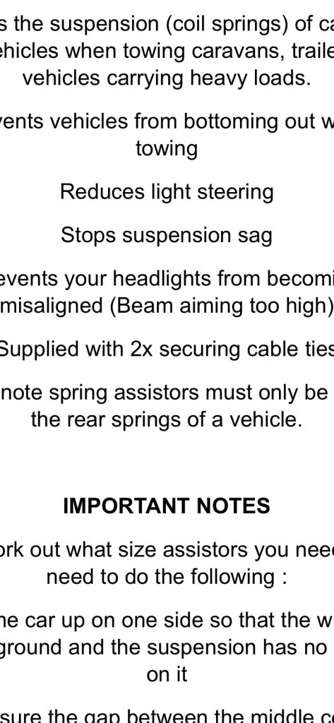 Pair new unused coil spring assistors. Fits 52/65 mm spring gap. Bargain at £10 firm. These are currently £24,95 on eBay.