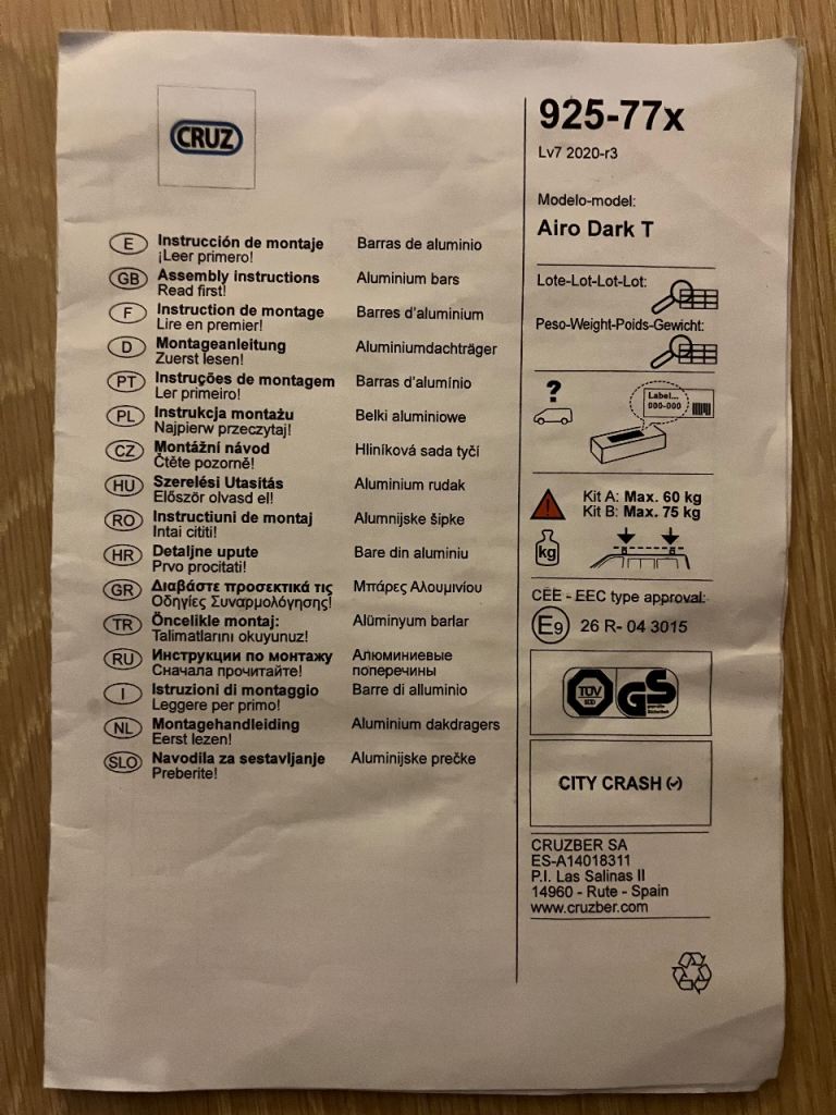Cruz 118cm Airo Dark T black aluminium roof bars with Optiplus fitting kit. Bought in 2023 for £119. Good condition. Used <10 times. Selling due to change of car.