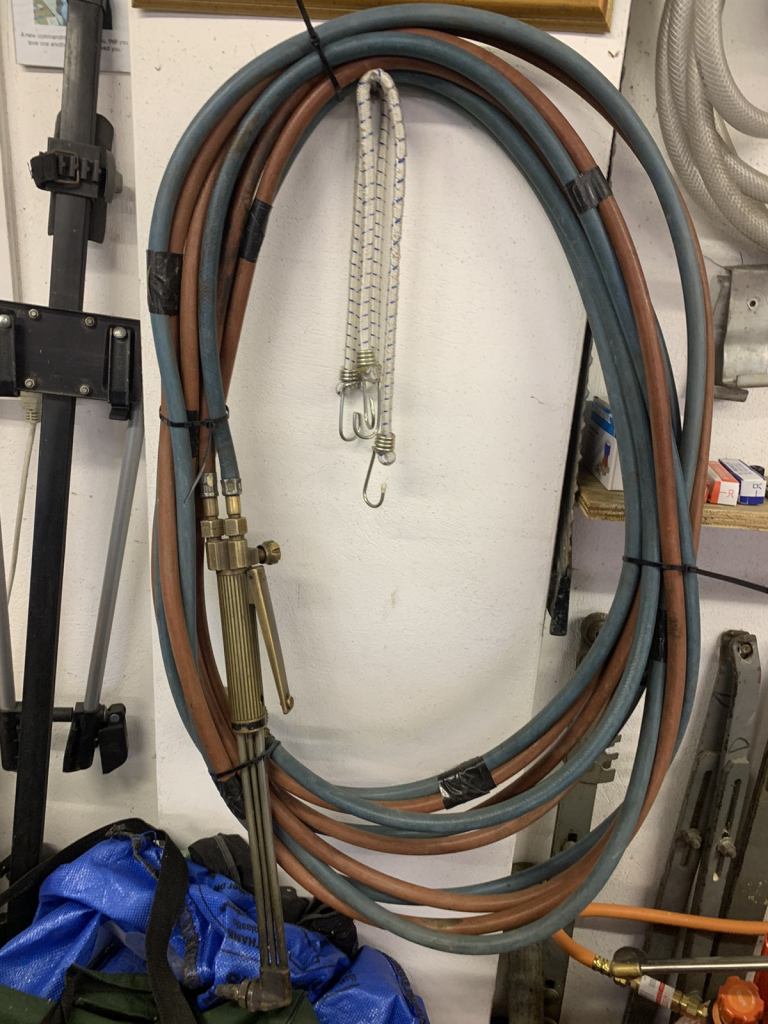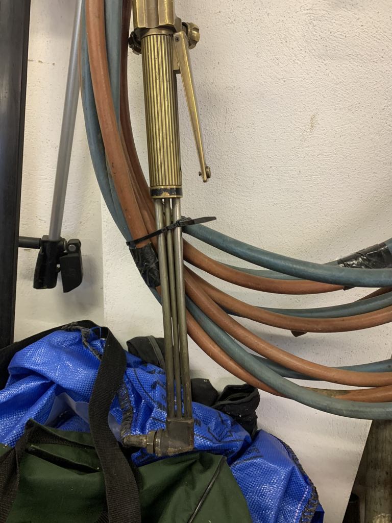 Cutting torch hose pipe with two regulators one with clock face damage