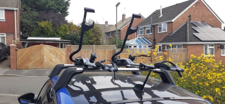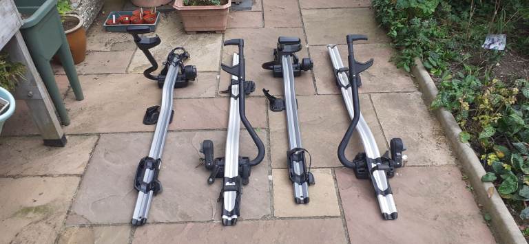 Aluminium cycle carriers to fit vehicle roof bars. Suitable for adult/children's bikes. All have 2 x locking keys. All are in a good condition and have all securing straps fitted. Complete with user manual.