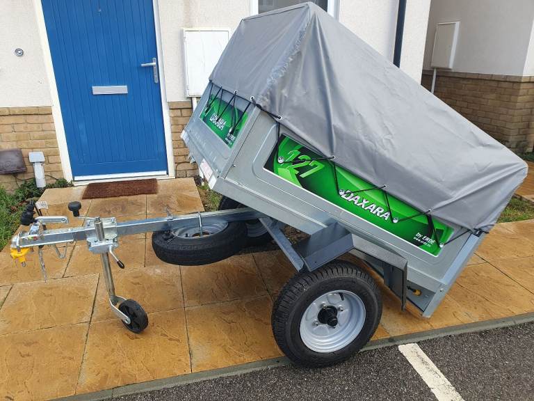 Daxara 127 Trailer in excellent condition with tipping function and rear tailgate, on 10-inch wheels with very good like new tyres and bearing. Comes with high frame and cover that doubles load capacity, spare wheel and bracket, jockey wheel and bracket, safety chain, Certificate of conformity, 2 x hitch locks, and working lights with 7pin plug. Viewing welcome