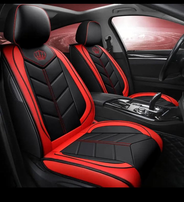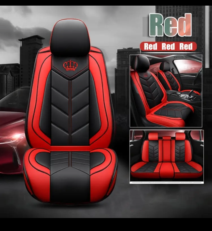 Posting for 11+ yearsDeluxe Red & Black Front & Rear Car Seat Covers Faux Leather with Headrest cover