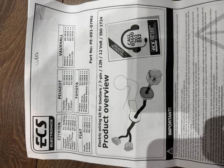Posting for 17+ yearsECS 7 Pin Towbar Wiring Kit For Vauxhall Vivaro C Dispatch Proace Expert and others