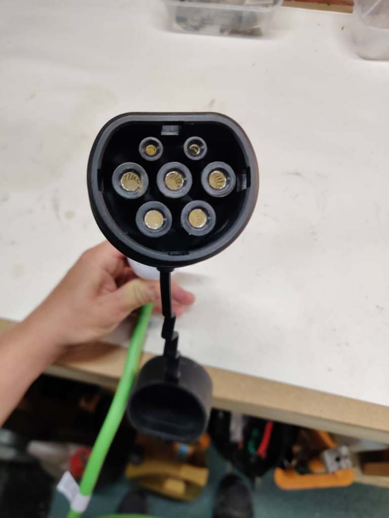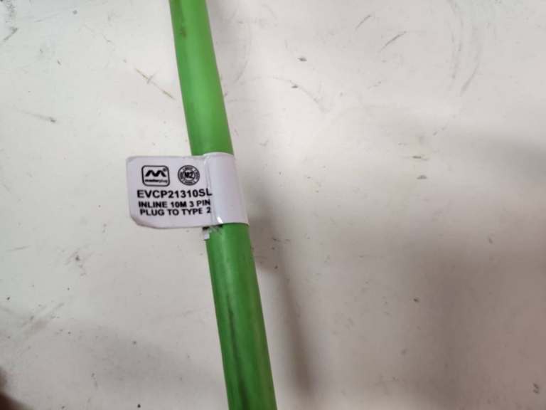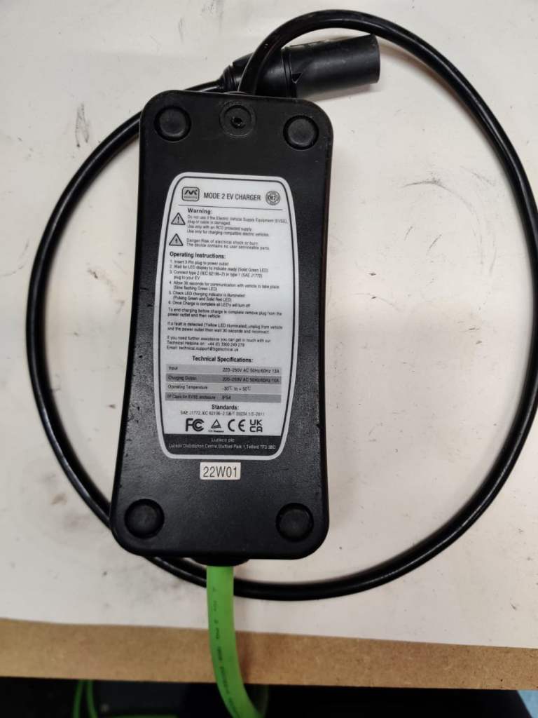 Home electric car charger, for 3 pin UK domestic plug, type 2 10A 2.4kW. 10m green lead, 5m black lead (with connector to go through letter box)