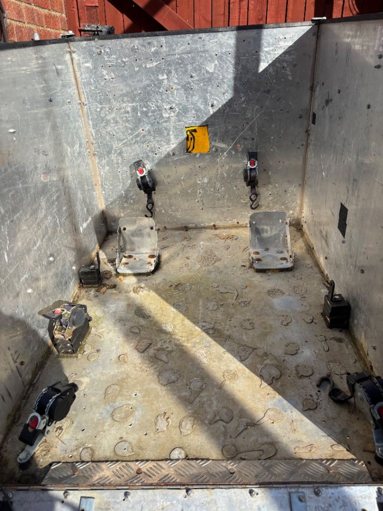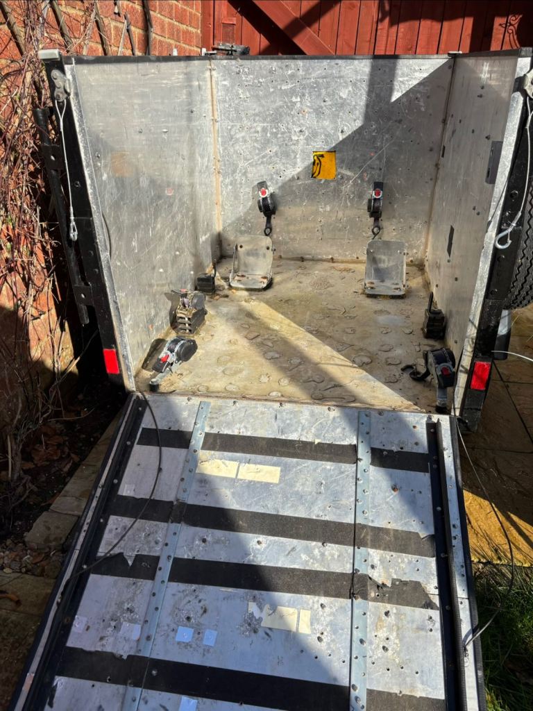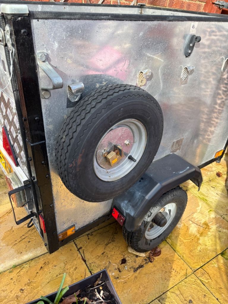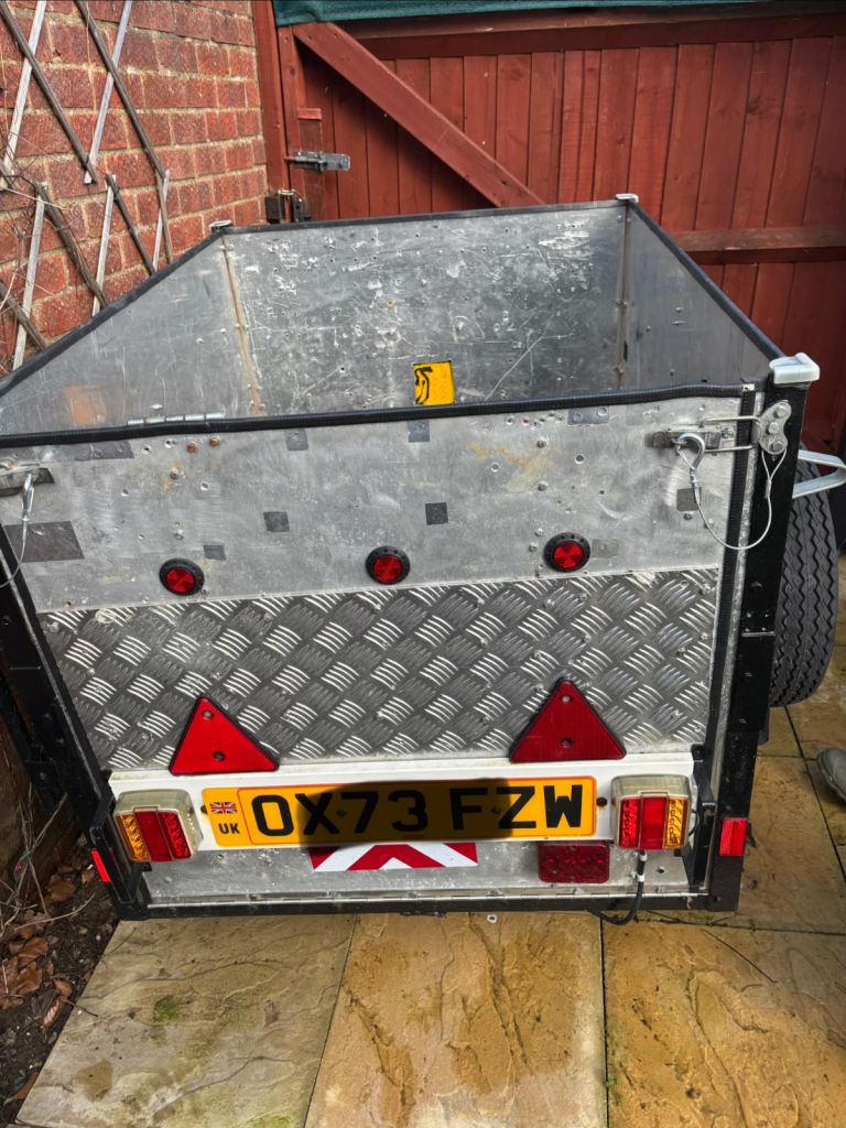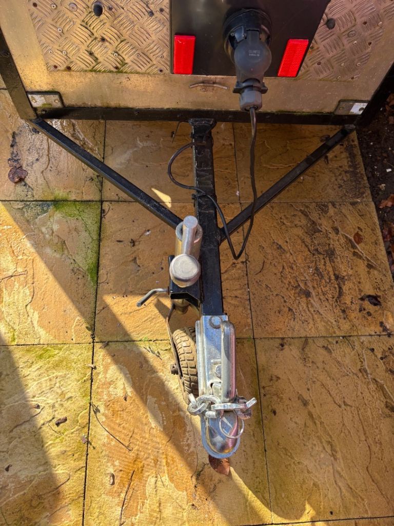 Electric wheelchair or mobility scooter trailer. 100% all metal with 5 racket straps to keep you item safe. Had need wheel bearing fitting last year last summer and has LED light board. All tyres were new last summer.