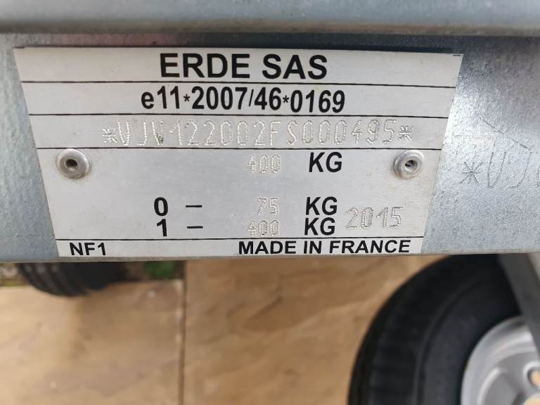 Erde 122.2 classic Trailer in excellent condition with tipping function and rear tailgate, fully serviced including recent new wheels and tyres and New bearing,