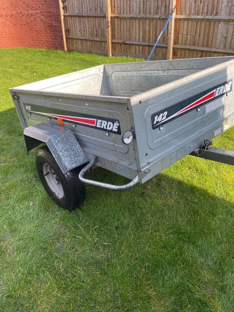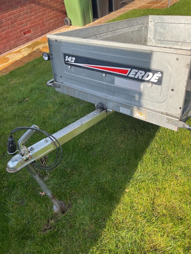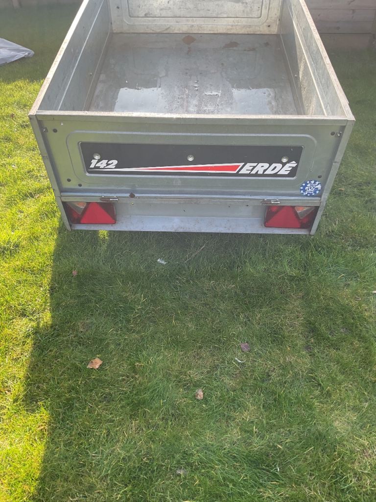 Erde 142 Trailer 5 x 3 in good condition ideal for camping or general use body tips with rain cover good tyres lights work fine tows very well. Collection Telford