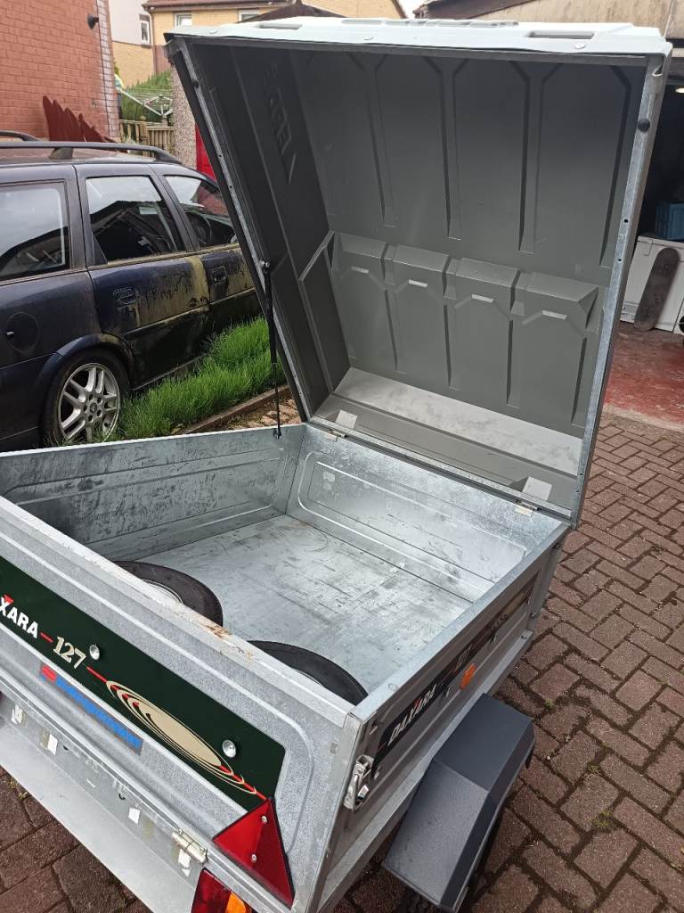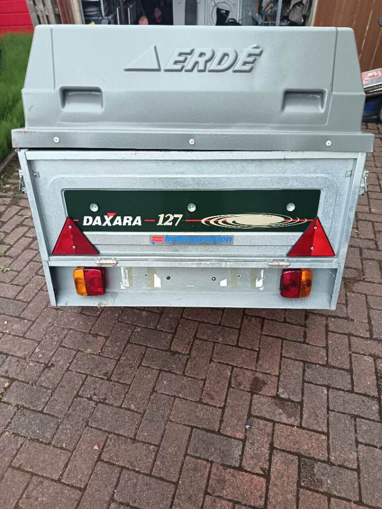 Erde Daxara 127 hard top trailer. Been well looked after. Always stored in dry garage. Electric hook up for lights. Will come with 2 spare wheels and the two current tyres are only 50 miles old. Can also provide a hitch lock.