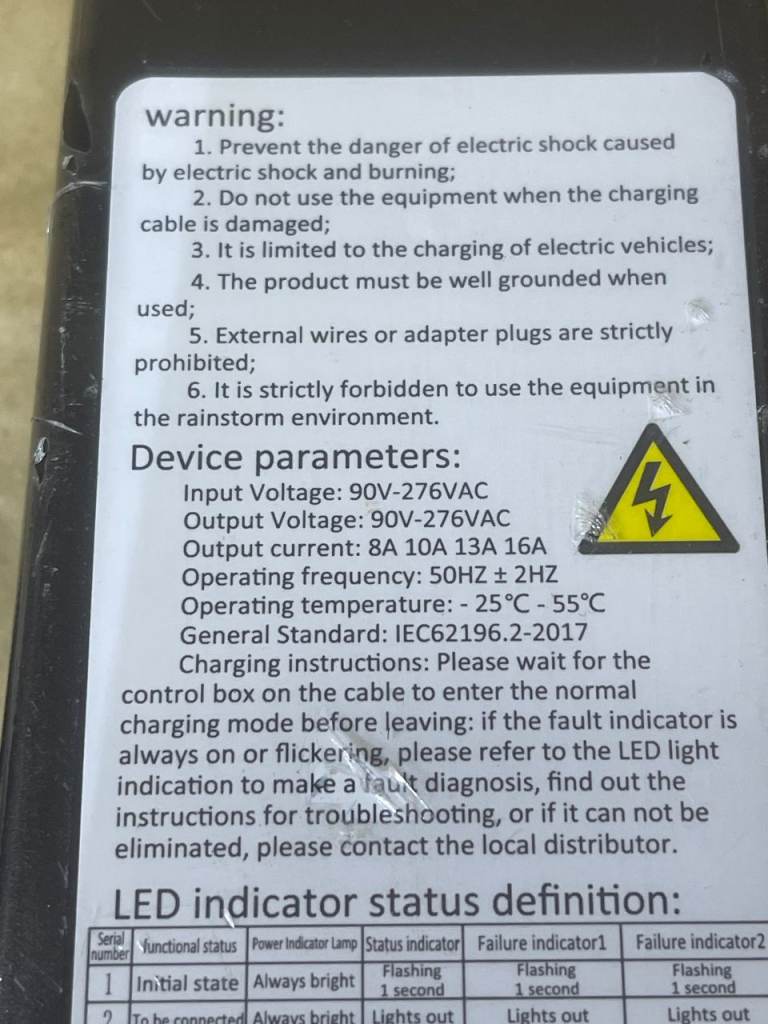 EV Charging Cable Type 2 UK Plug 3 Pin Electric Vehicle Car Charger Portable 16A