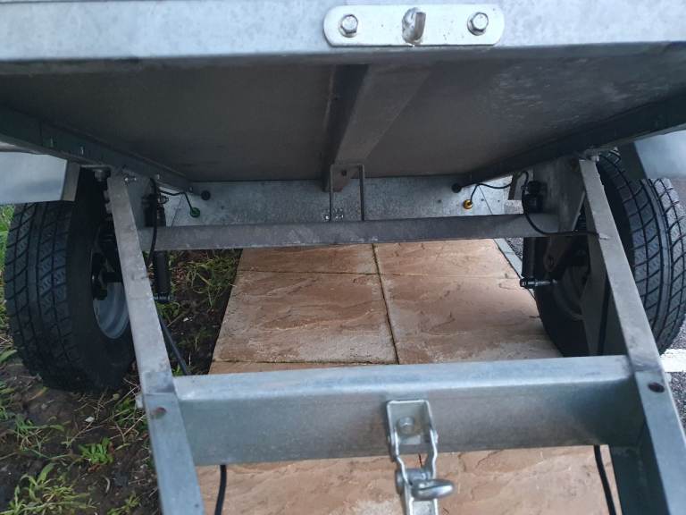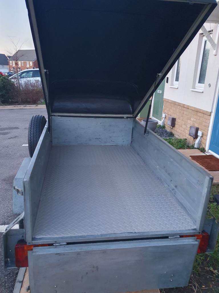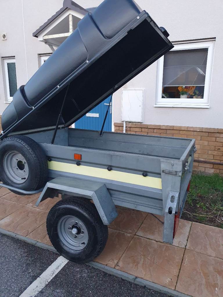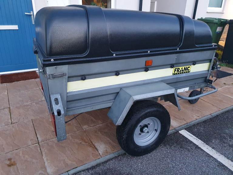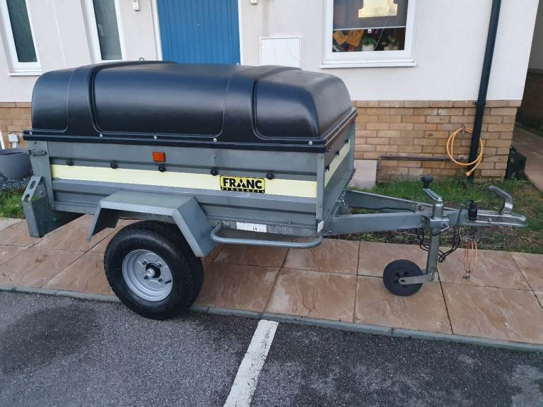 Franc 5x3 trailer in excellent condition with tipping function and rear tailgate, on 10-inch wheels with recent new tyres and just Servised with new bearing, comes with lockable hard top, spare wheel, jockey wheel, safety cable, shock absorbers (for smoother ride) and working lights with 7pin plug. Floor lined with foam tiles.