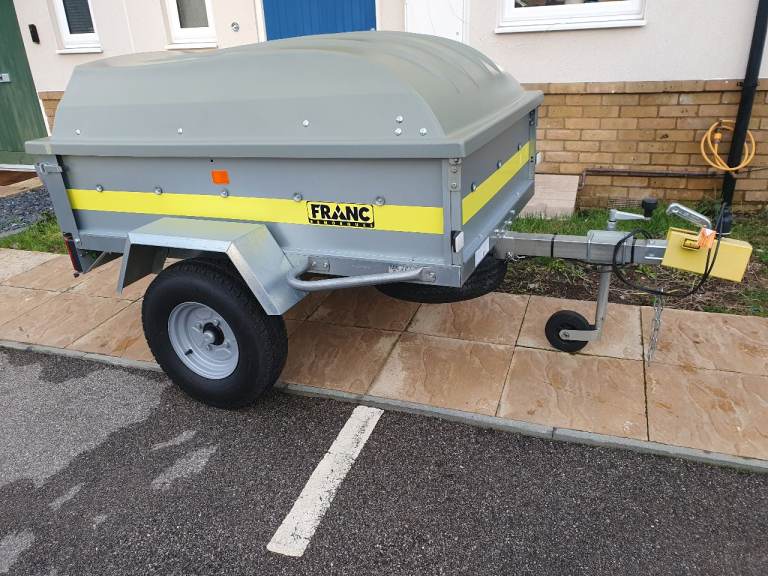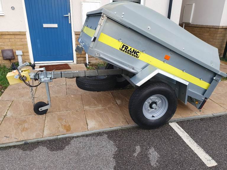 Franc GA150 trailer in excellent like new condition with tipping function and rear tailgate, on 10-inch wheels with very good tyres and bearing,