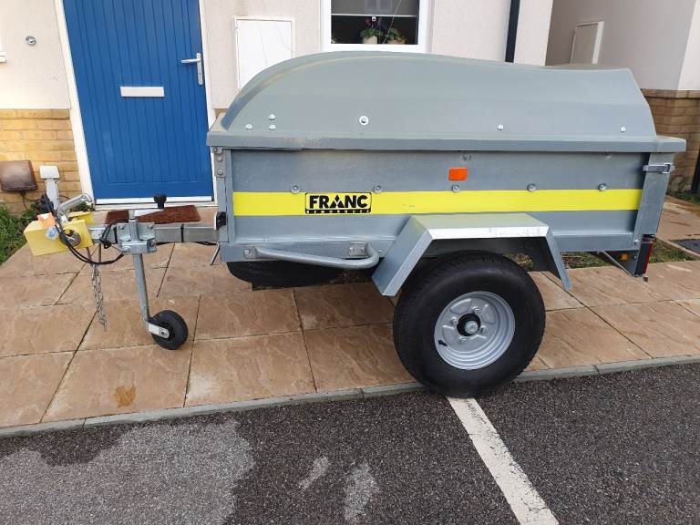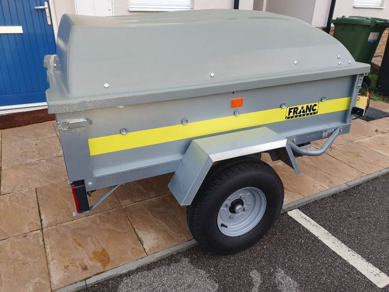 Franc GA150 trailer in excellent like new condition with tipping function and rear tailgate, on 10-inch wheels with very good tyres and bearing,