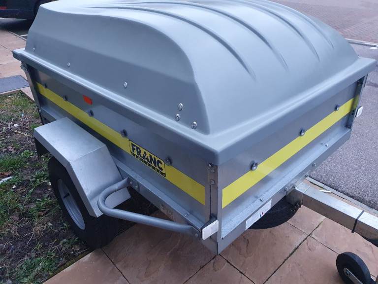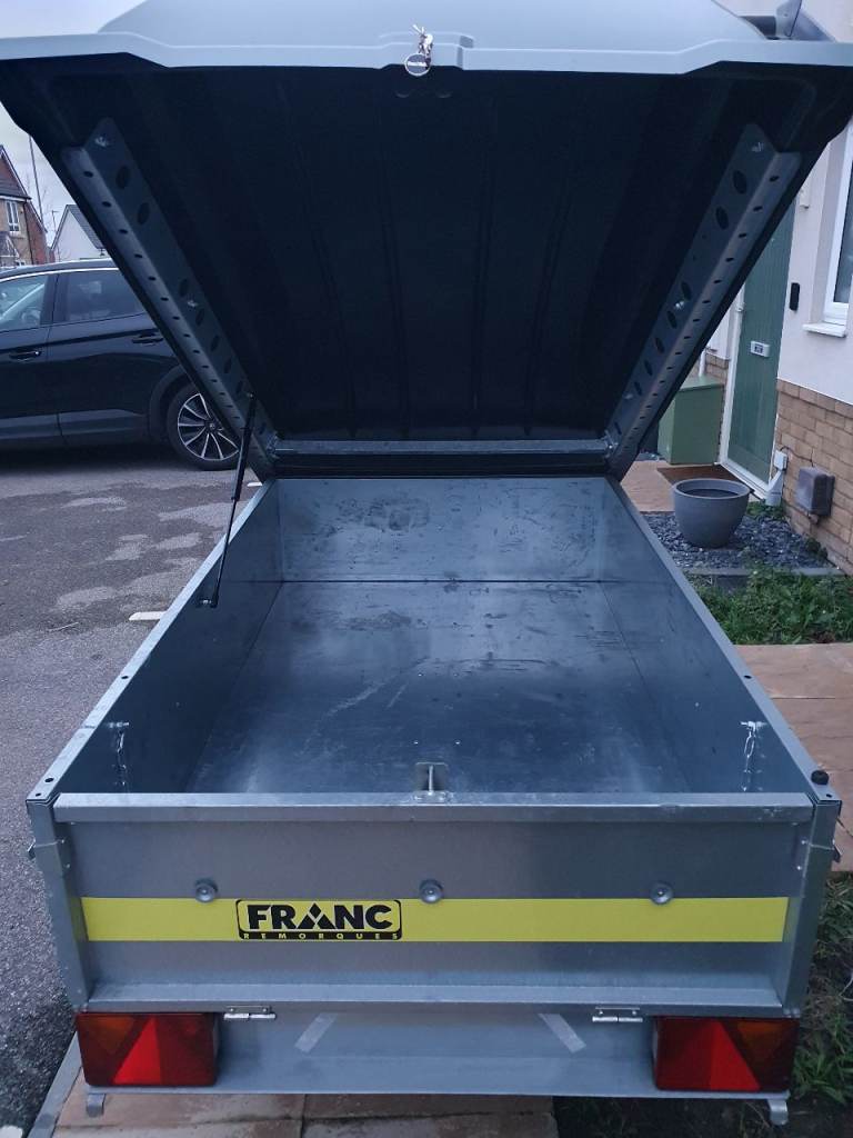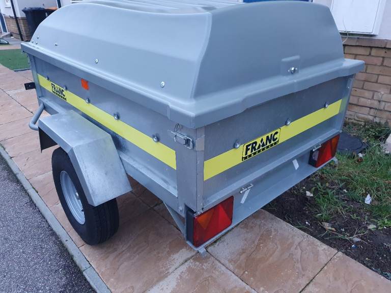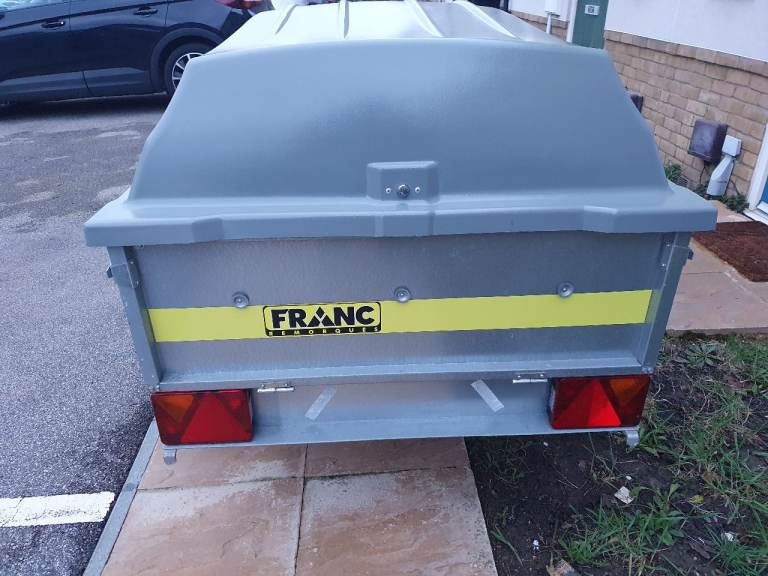 Franc 5x3 trailer in excellent condition with tipping function and rear tailgate, on 10-inch wheels with very good tyres and bearing, comes with lockable hard top, spare wheel and bracket attached underneath, jockey wheel and bracket, safety chain, hitch lock, and Working lights with 7pin plug. Viewing welcome