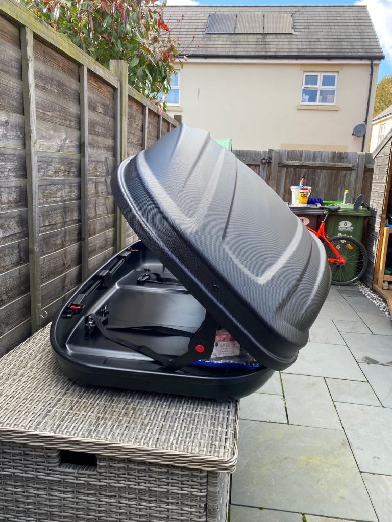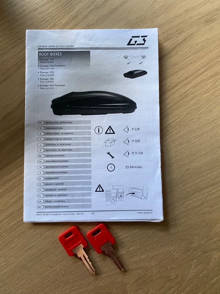 Stylish roof box bought directly from Ford, looks stunning. The box opens either way and comes complete with two keys. I am happy if you have any questions on it. Some of the features I have taken direct from the Ford site (this product is still sold):