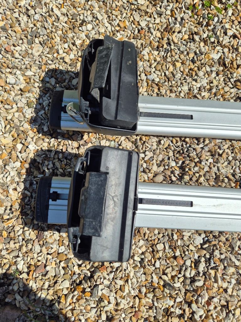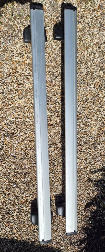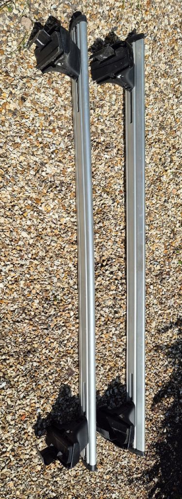 For sale 1 pair of genuine Jaguar XF saloon roof bars (2015-). Features secure clamp attachment, secure locking system and fully adjustable. Only used a couple of times, then stored.