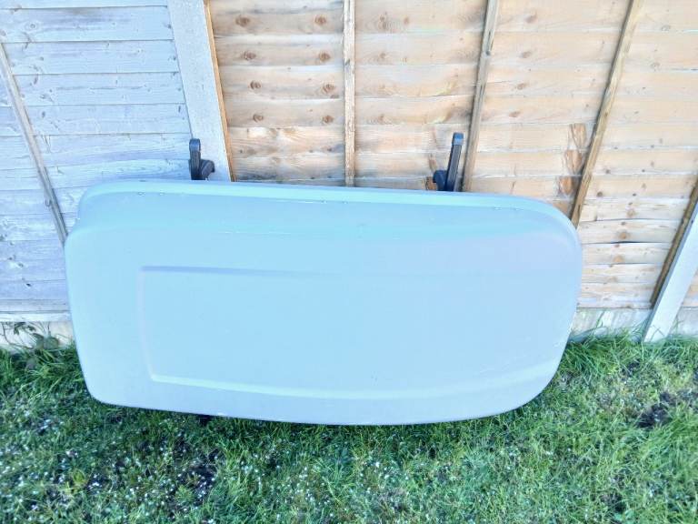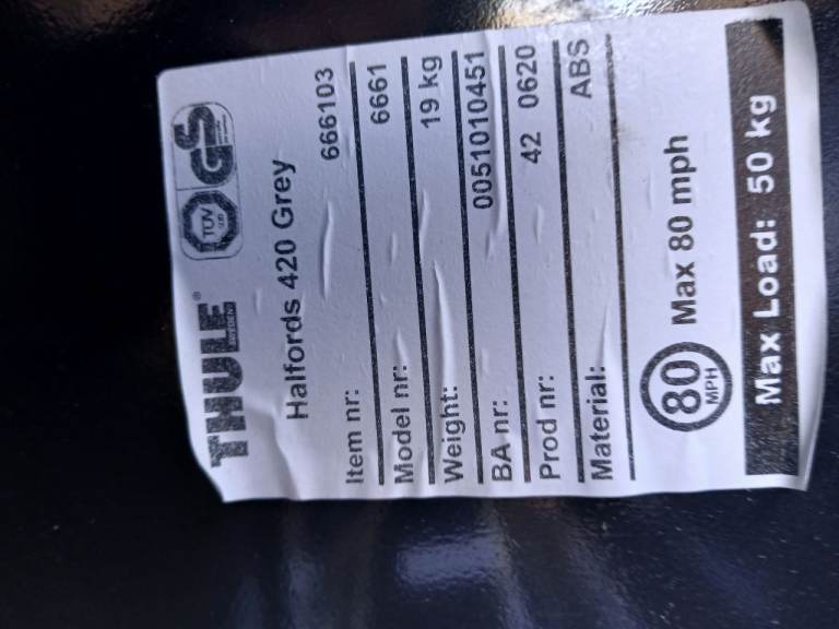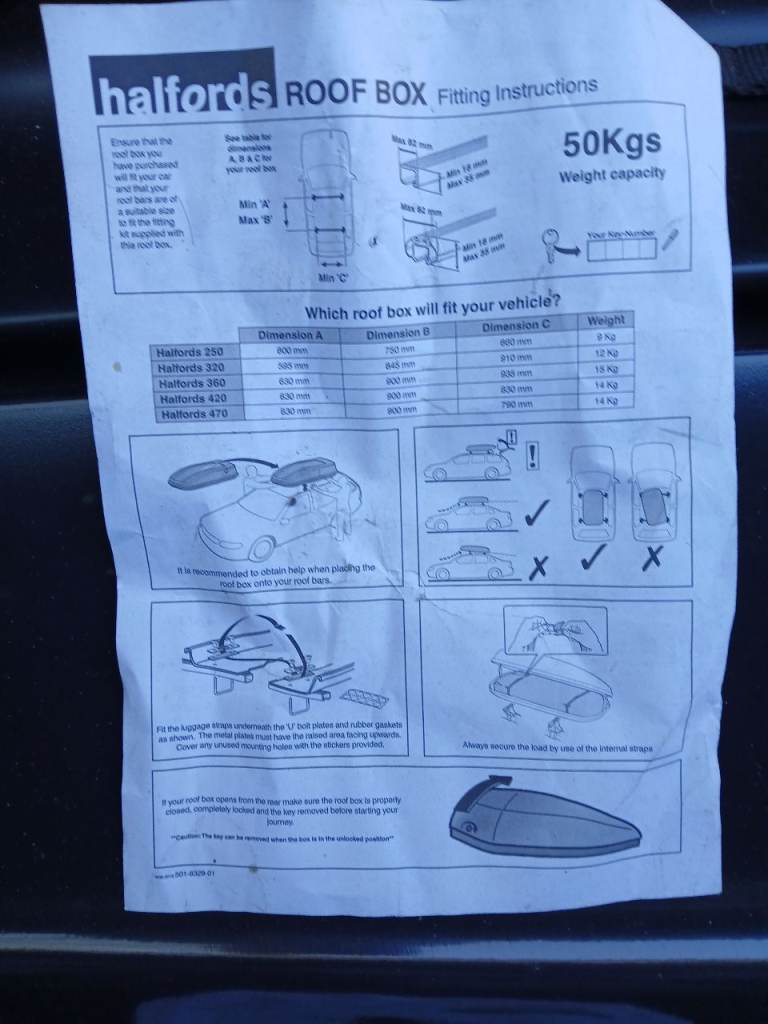 Halfords 420L Roof Box - Grey plus Halfords Raised Rail Steel Roof Bars Set r2 - 120cm Length in good condition. I used this for my 2010 Mazda 5 but I believe they fit many other cars.