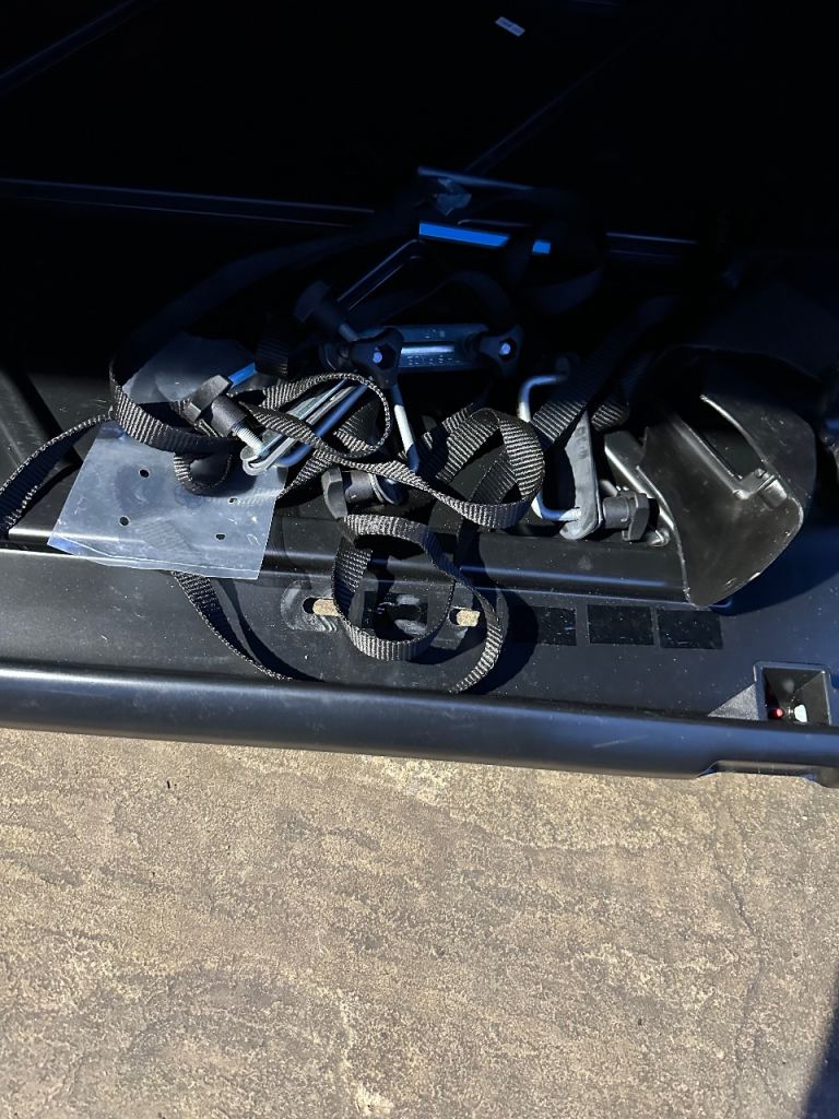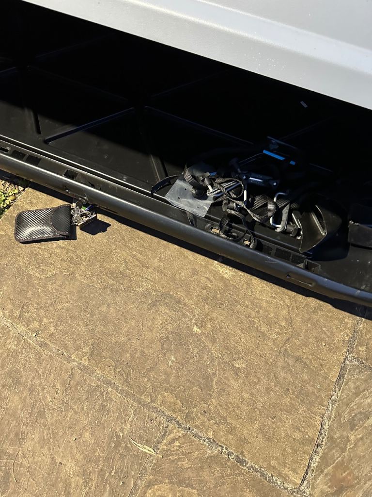 Halfords grey 420ltr roof box used for one holiday and been stored in shed ever since