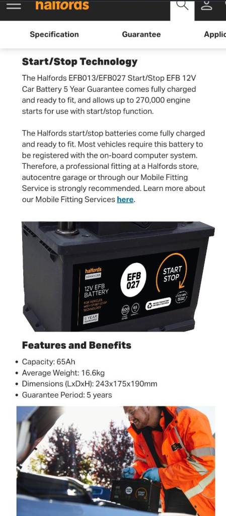 Posting for 15+ yearsHalfords EFB 027 12V stop start car battery