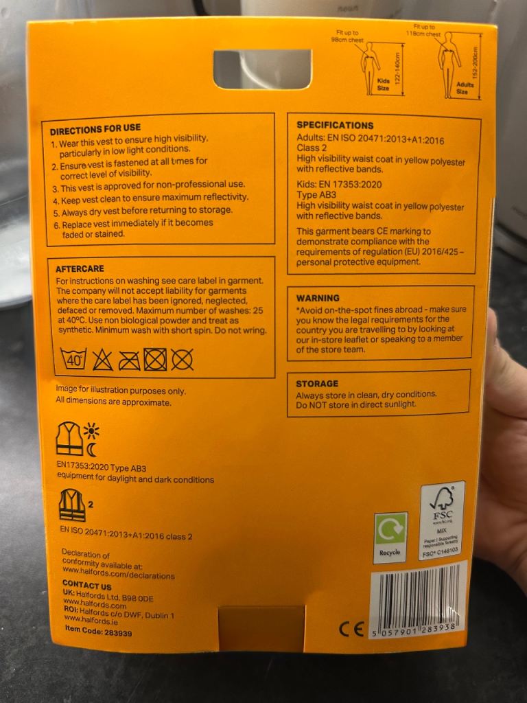 Posting for 1+ yearsHalfords High Visibility Vest Family Pack