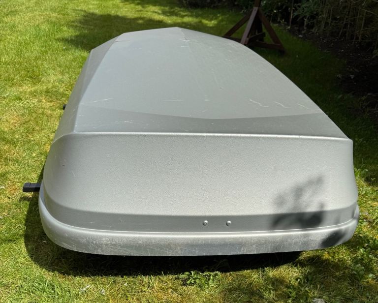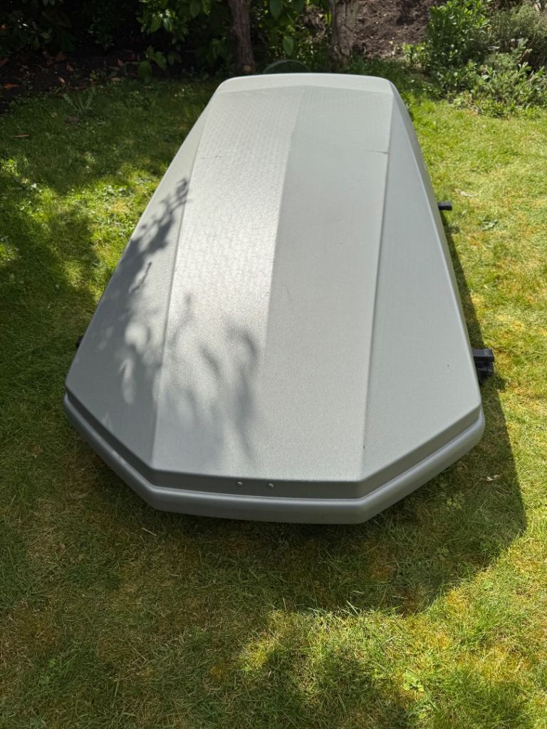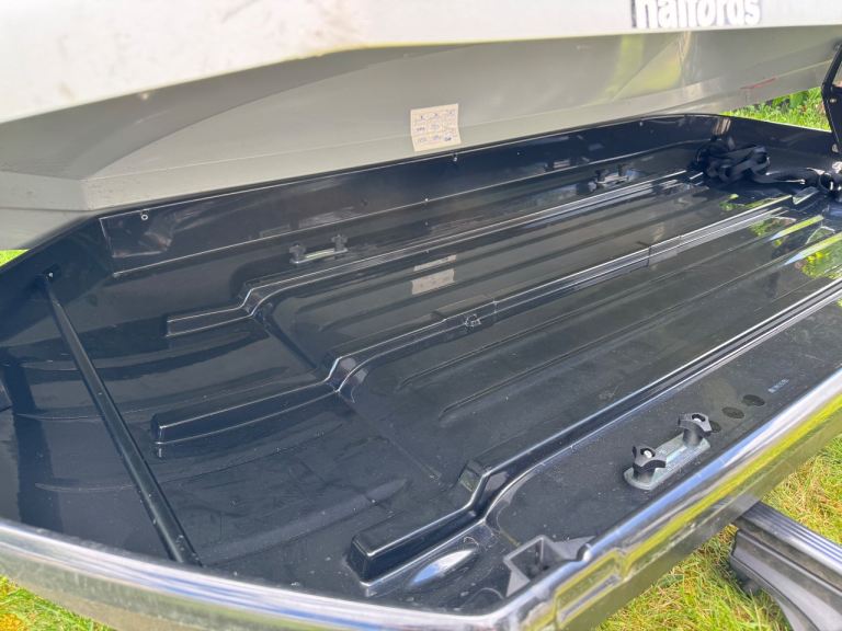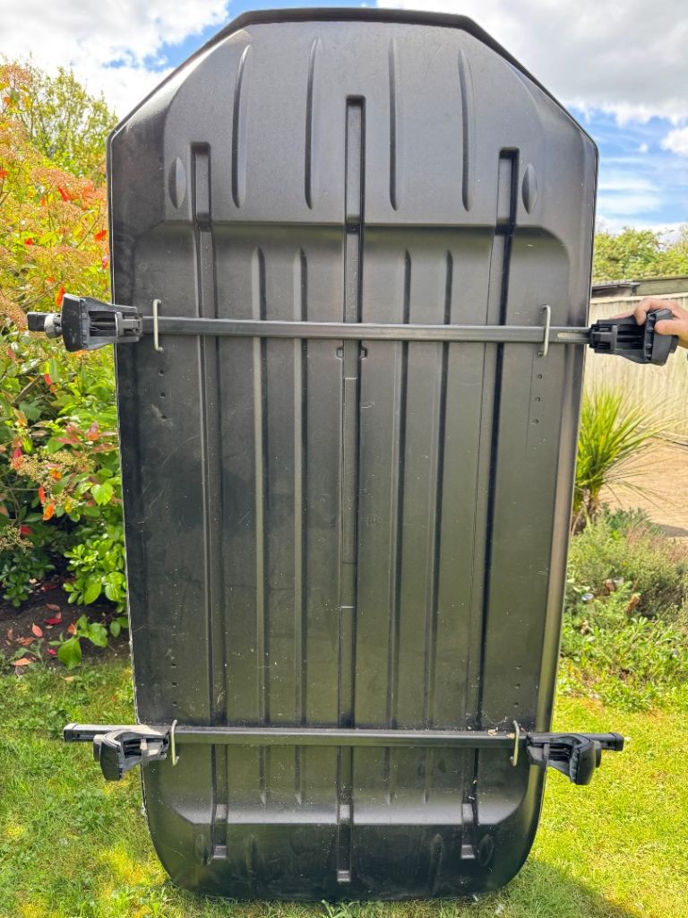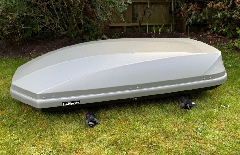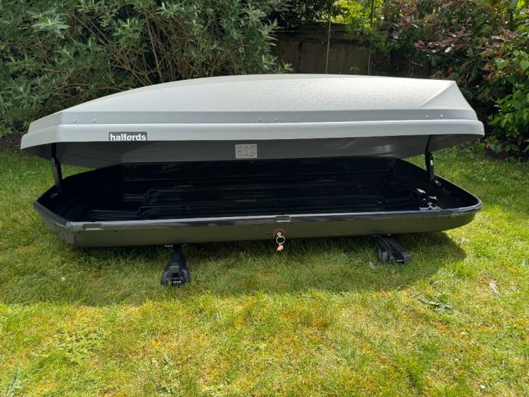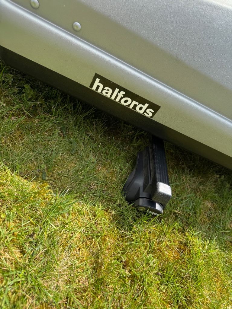 Posting for 2+ yearsHalfords Roof Box + Thule Roof Bar Fittings – Large, Lockable – Good Condition