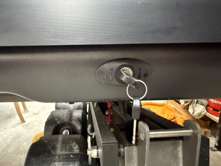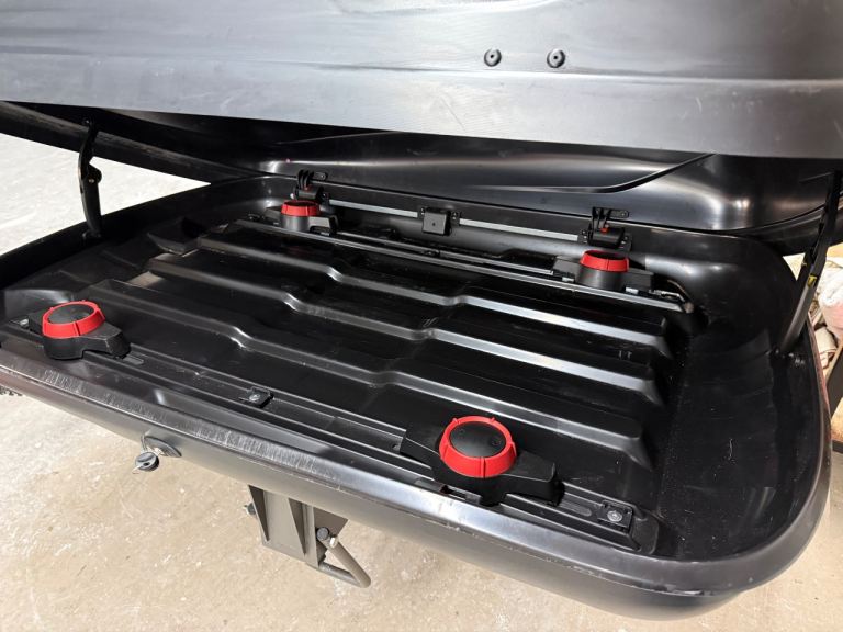 As above. Great condition, few light storage scuffs. Barely used. We used it on our campervan to store kids buggy. All clamps intact. 2 original keys.
