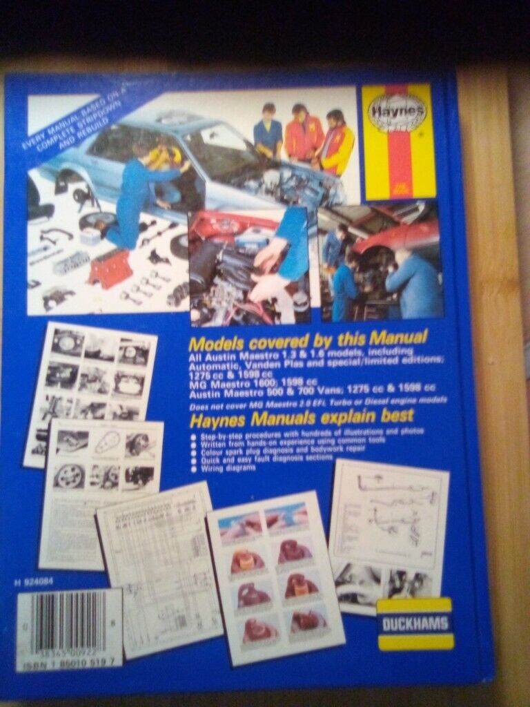 Haynes Austin manual for MAESTRO / MG / VANDEN PLAS ( petrol ) covers 1983 to 1989 1275cc & 1598cc good condition £6 collection Da3 Fawkham will post for costs .