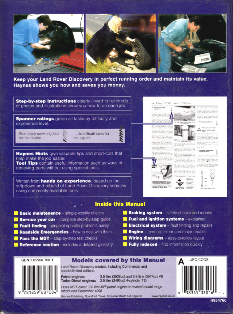 Posting for 17+ yearsHAYNES LAND ROVER DISCOVERY MANUAL 1989 - 1998 PETROL/DIESEL