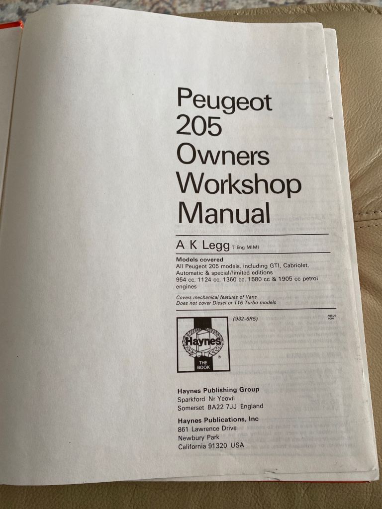 Posting for 10+ yearsHaynes Manual Peugeot 205 Petrol 83-89