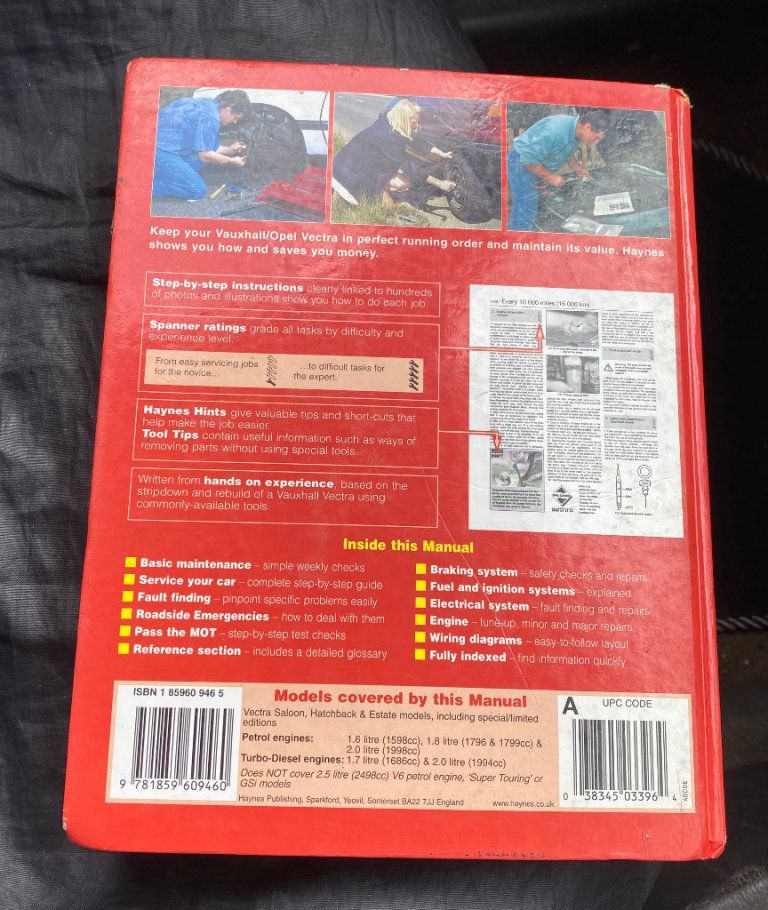 Haynes service and repair manual for Vauxhall Vectra 1995-1999 petrol and diesel