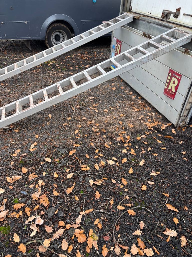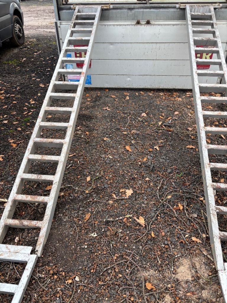 Heavy duty metal ramps , made out of angle iron and box section ,where used for loading a vintage tractor into back of 7.5 ton box lorry , very heavy will add sizes later
