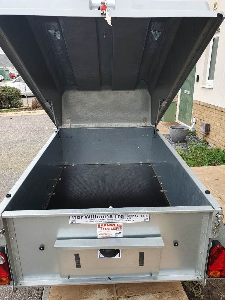 Ifor Williams PE5 camping trailer in excellent condition with rear tailgate, on 10-inch wheels with very good tyres and bearing, tows very nice and sturdy