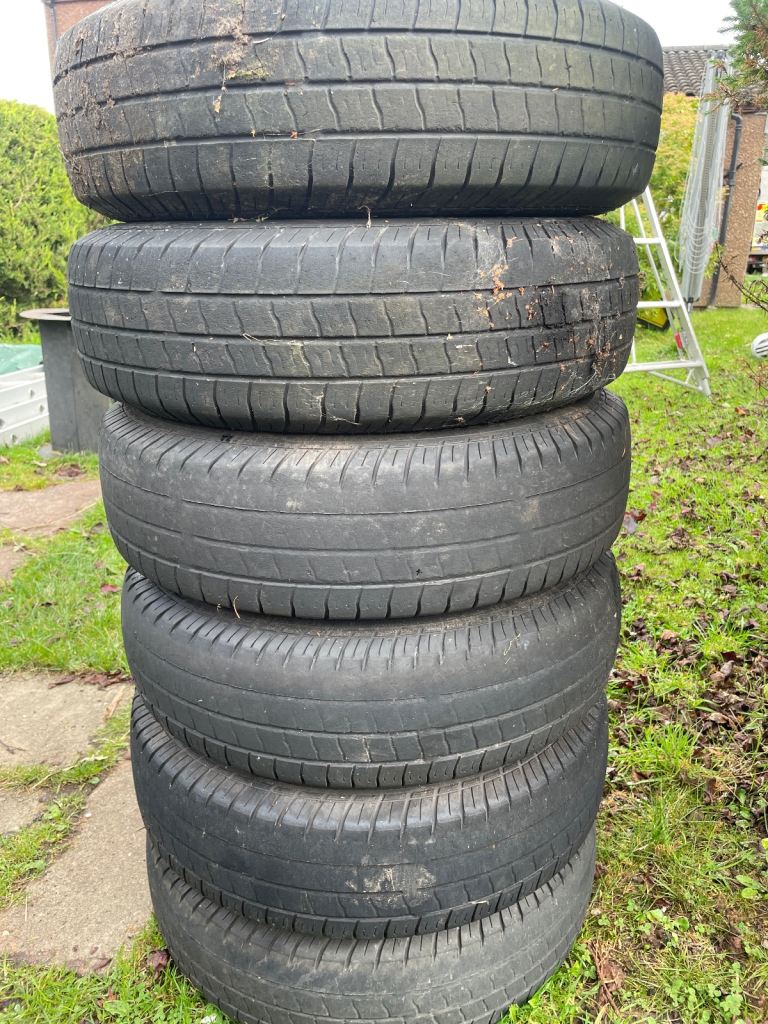 6 x used tires, 5 of which have full pressure, 2 are still road legal. £40