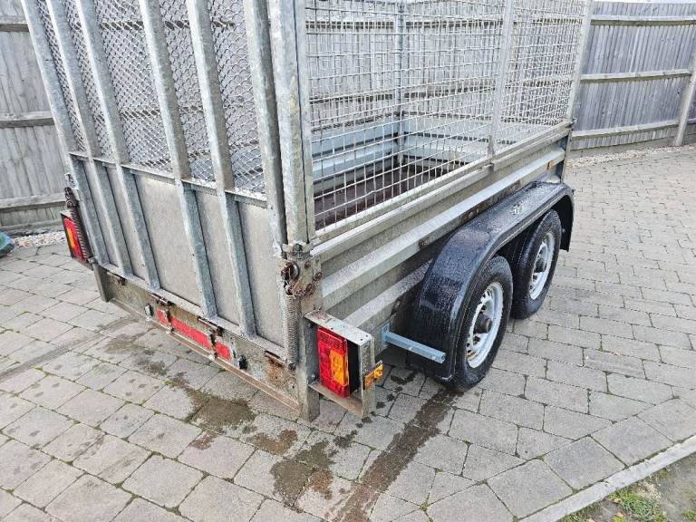 indespension cage side trailer 8ft x 4ft 2600kg, full cage with rear ramp, spare wheel with new tyre, solid floor, all new tyres, lights all working, Ashford kent area to veiw