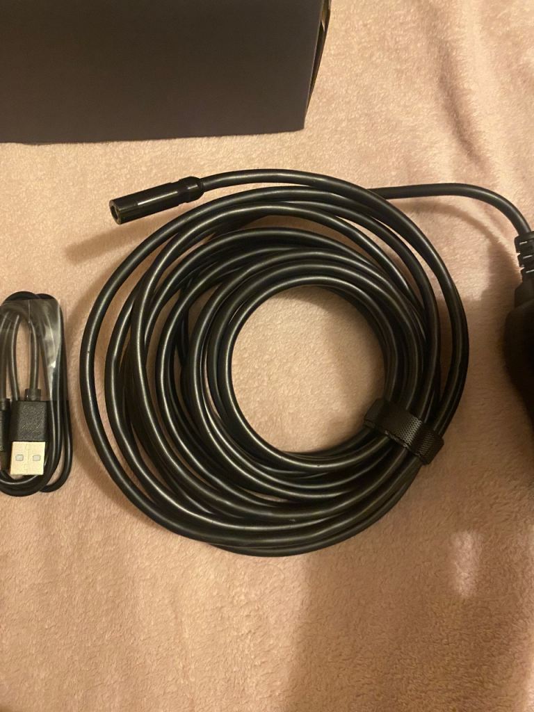 Inspection camera hard cable waterproof camera with LED lights, comes complete with USB charging cable, camera attachment hooks.