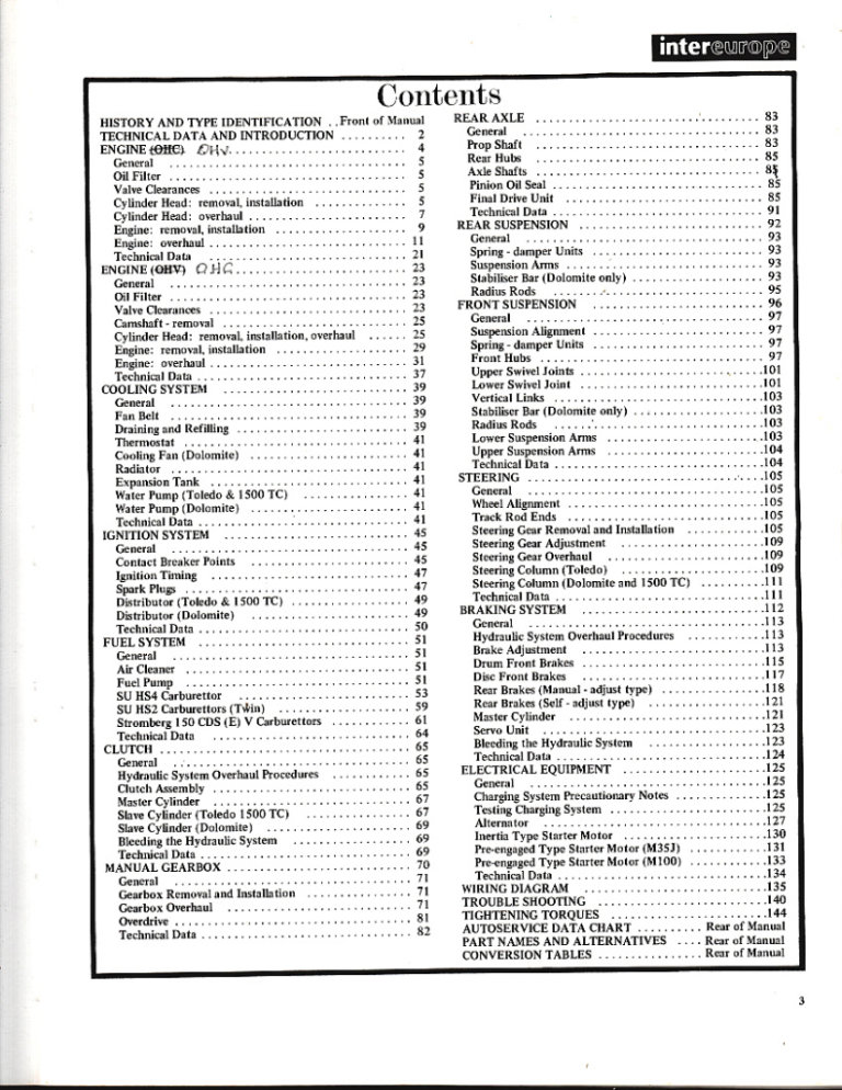 INTEREUROPE TRIUMPH TOLEDO, 1500TC, DOLOMITE COVERS OHV 1300, 1500 and OHC 1854 engines.Does not cover 1998cc OHC Sprint edition.