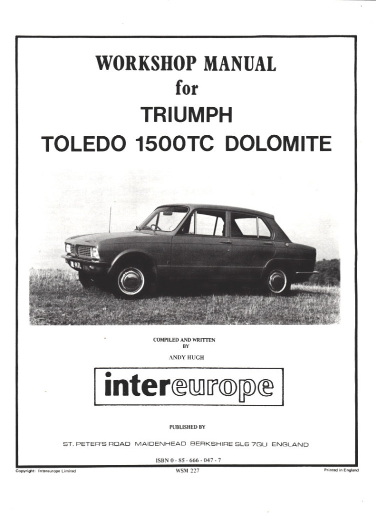 Posting for 17+ yearsINTEREUROPE TRIUMPH TOLEDO, 1500TC, DOLOMITE MANUAL '72 ON 227
