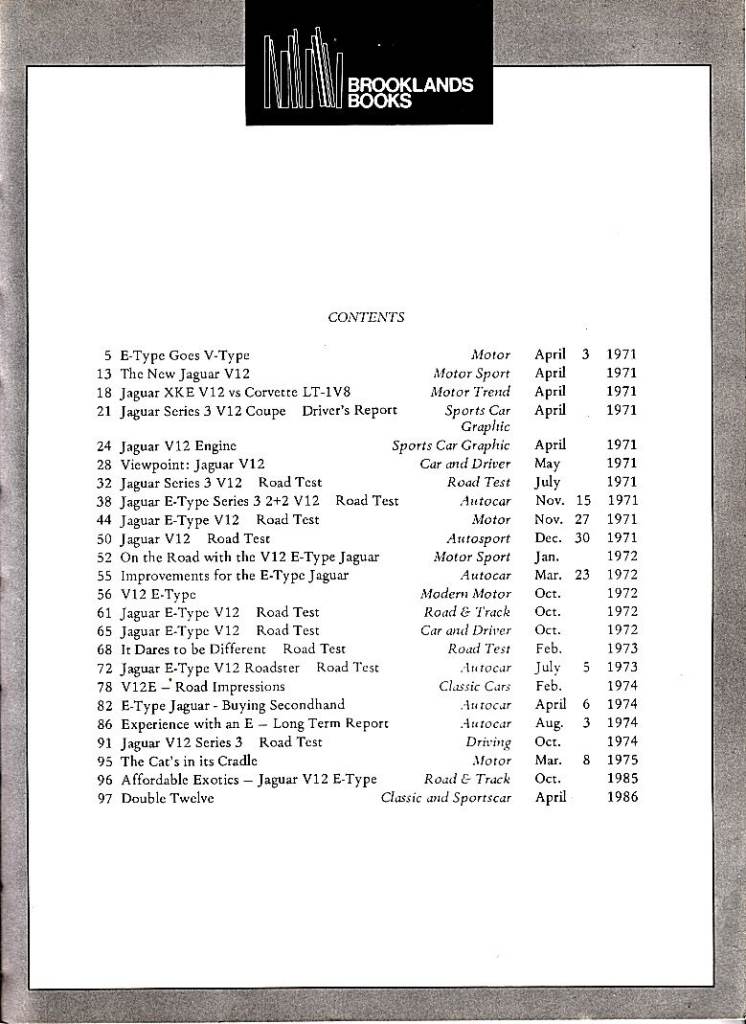BROOKLANDS BOOKS, JAGUAR E TYPE 1971 - 1975 SERIES III V12. REVISED EDITION 1985.This book is a must for owners and future buyers of a Series III E Type. The book contains road tests, comparison test and information for second hand buyers.