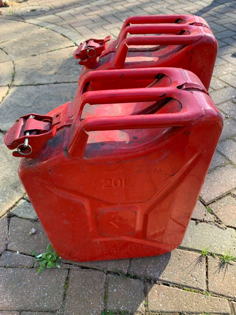 Posting for 11+ yearsJerry Cans - 2 x 20L - red metal