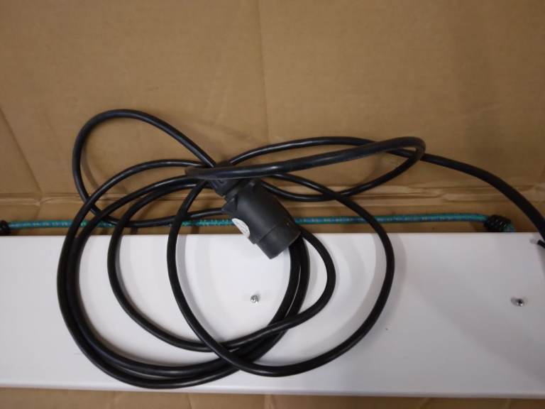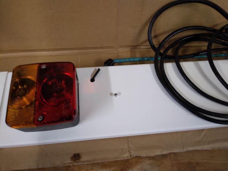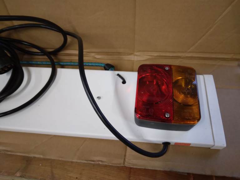 As new portable lighting board for trailers, bike racks etc. Comes with regulation rear, stop and number plate lights. All you need is a number plate. Fitted with a 4 metre cable and standard 7 pin towbar plug. It also has 2 holes in the board for fixing in position.