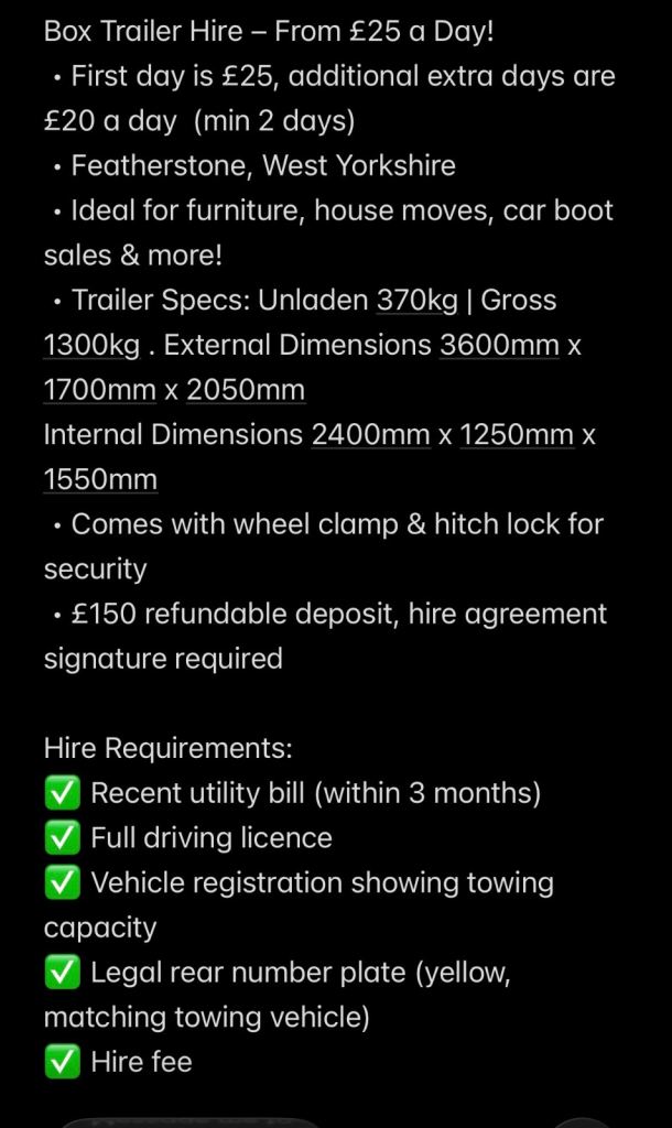 Posting for 1+ yearsLocal Box Trailer Hire from £25 a day